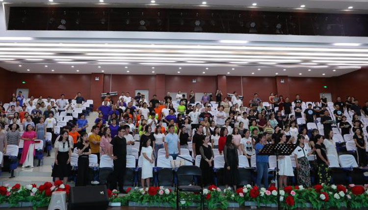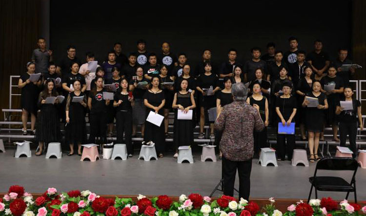 受河南省教育厅体卫处邀请,2019年8月27日至28日,中国著名指挥家、教育家、“合唱妈妈”吴灵芬教授莅临河南艺术职业学院,为全省中小学音乐教师进行合唱专题培训,旨在引领先进的音乐教学理念,进一步提升全省中小学音乐教师队伍的专业能力,推动合唱团建设,提高学校合唱教学水平。河南省教育厅教师合唱团、郑州市教师合唱团、安阳县教师合唱团、信阳市平桥区教师合唱团、河南艺术职业学院音乐系教师,以及省内其它合唱团指挥和代表300余人参加了本次培训。